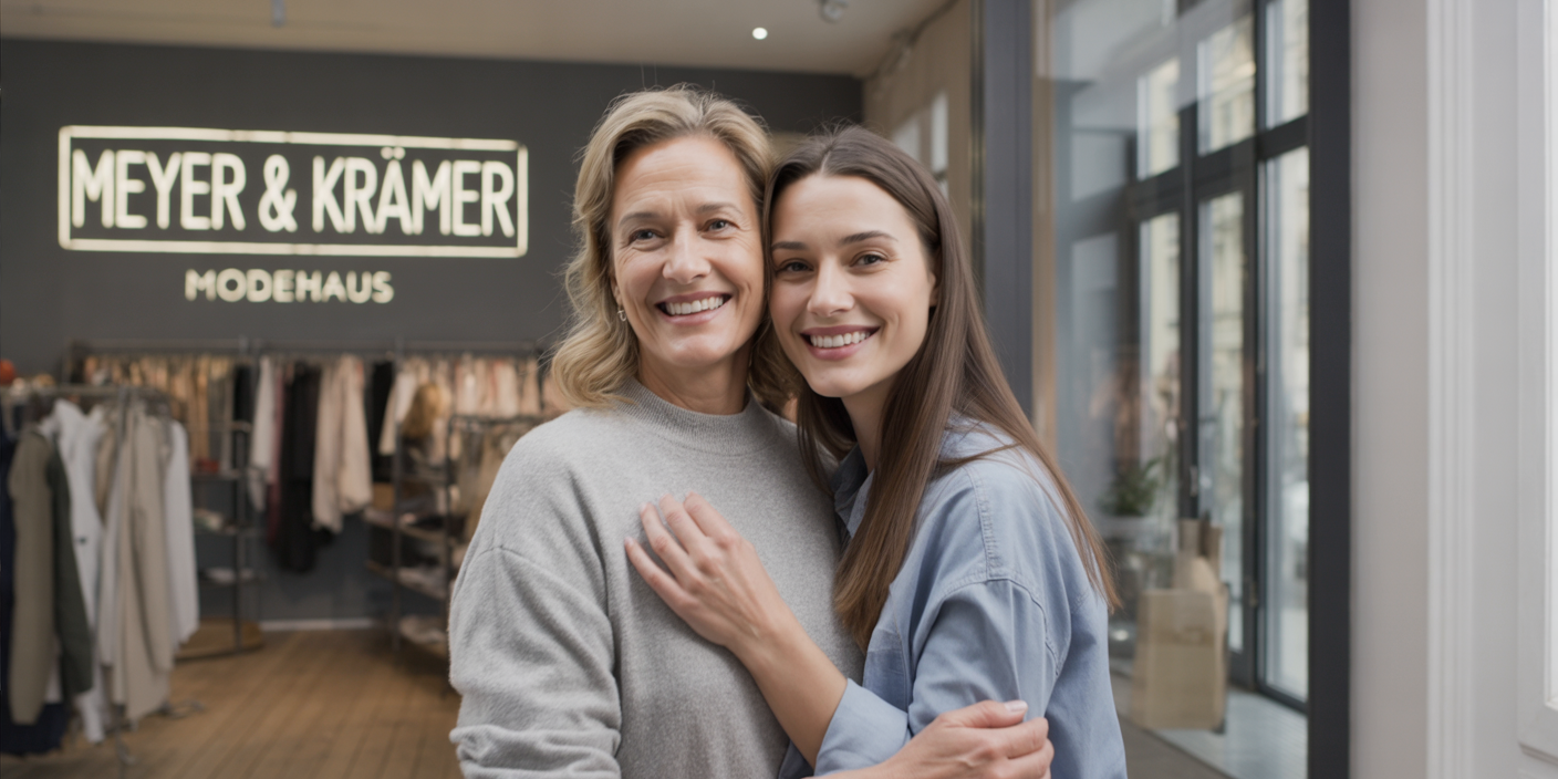 Seit zwanzig Jahren geführt von Mutter Anna Meyer und Tochter Emilia Krämer. Was einst als kleiner Laden voller Kartons begann, ist heute ein Modehaus, in dem Frauen sich gesehen, schön und wohl fühlen. Zeitlose Qualität, durchdachte Passformen und stilvolle Stücke, die Sie lange begleiten. Zu unserem 20-jährigen Jubiläum feiern wir mit einer besonderen Anniversary Sale. Willkommen bei Mode, die mit Ihrem Leben mitgeht.